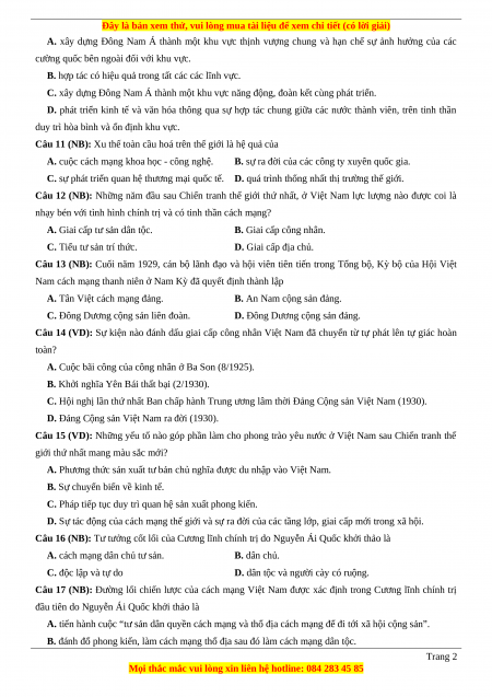 Câu 10 (NB): Mục tiêu thành lập của tổ chức ASEAN là Trang 1
