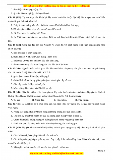 Câu 14 (VD): Sự kiện nào đánh dấu giai cấp công nhân Việt Nam đã chuyển từ tự phát lên tự giác hoàn toàn?