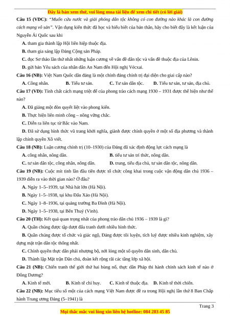 Câu 15 (VDC): “Muốn cứu nước và giải phóng dân tộc không có con đường nào khác là con đường