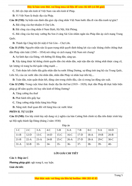 Câu 29 (VD): Vì sao trong quá trình khai thác thuộc địa lần thứ hai, tư bản Pháp hạn chế phát triển công