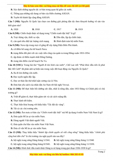 Câu 14 (NB): Hình thức đấu tranh được Đảng ta sử dụng trong giai đoạn 1936-1939 là gì? Trang 2