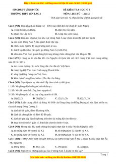 Đề thi cuối kì 1 Lịch sử 12 năm 2023 Trường THPT Yên Lạc 2 - Vĩnh Phúc
