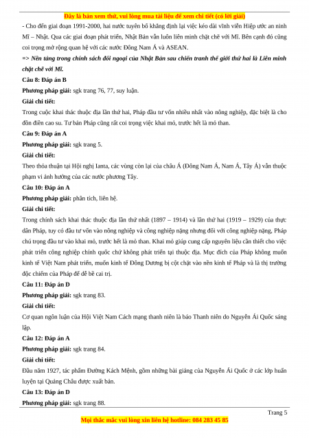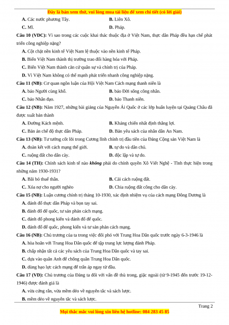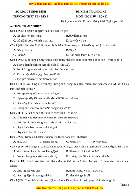 Câu 9 (NB): Theo thỏa thuận của Hội nghị Ianta, Đông Nam Á thuộc phạm vi ảnh hưởng của Trang 1
