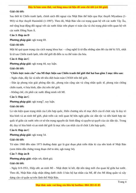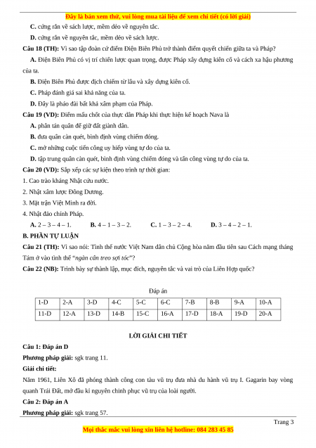 Câu 22 (NB): Trình bày sự thành lập, mục đích, nguyên tắc và vai trò của Liên Hợp quốc? Đáp án 1-D 2-A 3-D 4-C 5-C 6-C 7-B 8-B 9-A 10-A 11-D 12-A 13-D 14-B 15-C 16-A 17-D 18-A 19-D 20-A LỜI GIẢI CHI TIẾT