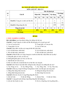 Chủ đề 3. Đồng bằng Bắc Bộ 5 4 (2đ) (1đ) Tổng số câu hỏi 8 0 6 0 0 1 0 1 Tỉ lệ % 40% 30% 20% 10% Tỉ lệ chung 70% 30% ĐỀ BÀI