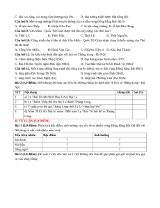 Bài 2 (1,0 điểm). Điền đúng (Đ) hoặc sai (S) cho những thông tin dưới đây về lịch sử Thăng Long - Hà Nội. STT Nội dung Đúng (Đ) Sai (S) 1
