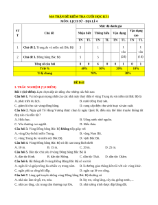 Chủ đề 3. Đồng bằng Bắc Bộ 5 5 (2đ) (1đ) Tổng số câu hỏi 8 0 6 0 0 1 0 1 Tỉ lệ % 40% 30% 20% 10% Tỉ lệ chung 70% 30% ĐỀ BÀI