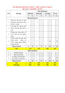 MA TRẬN ĐỀ KIỂM TRA CUỐI KÌ 1 - MÔN: LỊCH SỬ VÀ ĐỊA LÍ