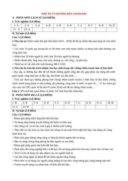 Chiến tranh thế giới thứ nhất (1914 - 1918) và 4 2 2 1/2 1/2 Cách mạng tháng Mười Nga năm 1917 Tổng số câu hỏi 6 0 6 0 0 1/2 0 1/2 Tỉ lệ 15% 15% 10% 10% Phân môn Địa lí 1 Khí hậu Việt Nam 2 4 2 Thủy văn Việt Nam 2 2