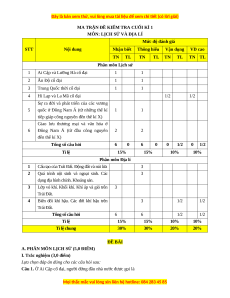 MÔN: LỊCH SỬ VÀ ĐỊA LÍ Mức độ đánh giá STT Nội dung Nhận biết Thông hiểu Vận dụng VD cao TN TL TN TL TN TL TN TL Phân môn Lịch sử 1