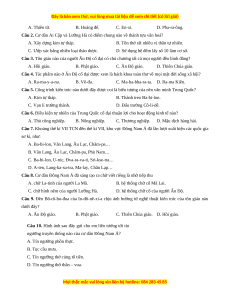 Câu 5. Công trình kiến trúc nào dưới đây được coi là biểu tượng của nền văn minh Trung Quốc? A. Kim tự tháp. B. Thành treo Ba-bi-lon. C. Vạn lí trường thành.