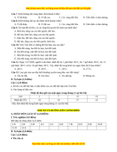 Mỗi đáp án đúng được 0,25 điểm 1-D 2-B 3-B 4-C 5-C 6-B 7-B 8-D 9-B 10-B 11-D 12-A