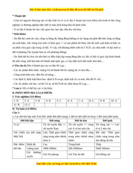 B. PHÂN MÔN ĐỊA LÍ (5,0 ĐIỂM)