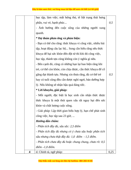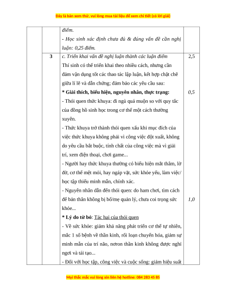- Học sinh xác định chưa đủ & đúng vấn đề cần nghị luận: 0,25 điểm. 3