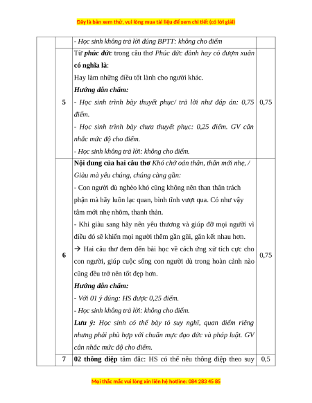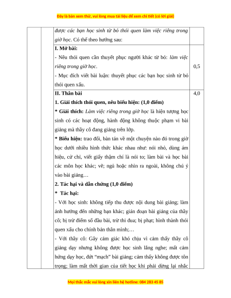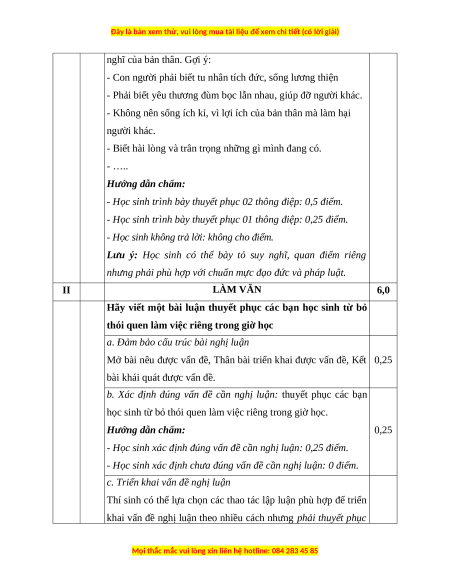 - Học sinh xác định chưa đúng vấn đề cần nghị luận: 0 điểm.