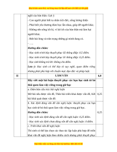 - Học sinh trình bày thuyết phục 01 thông điệp: 0,25 điểm.