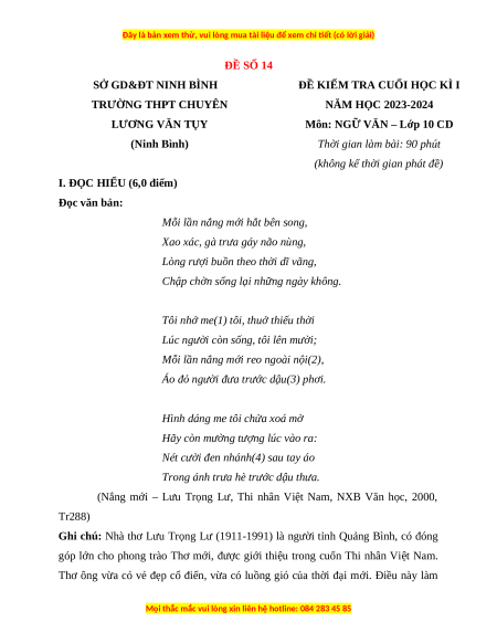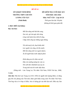 Môn: NGỮ VĂN – Lớp 10 CD (Ninh Bình)