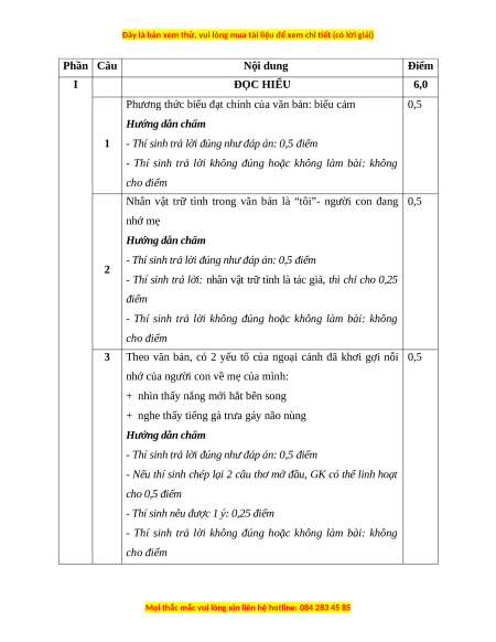- Thí sinh trả lời không đúng hoặc không làm bài: không cho điểm 3