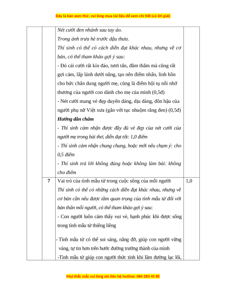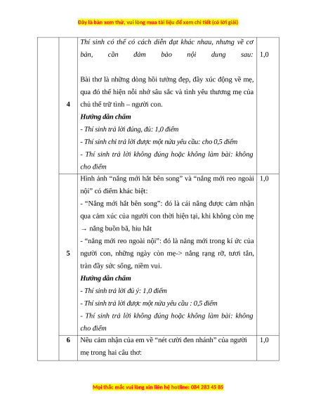 - Thí sinh trả lời đủ ý: 1,0 điểm