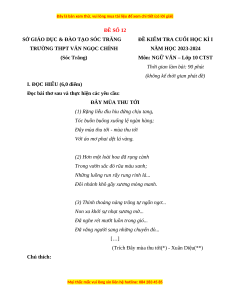 Đề thi cuối kì 1 Ngữ Văn 10 Chân trời sáng tạo (Đề 12)