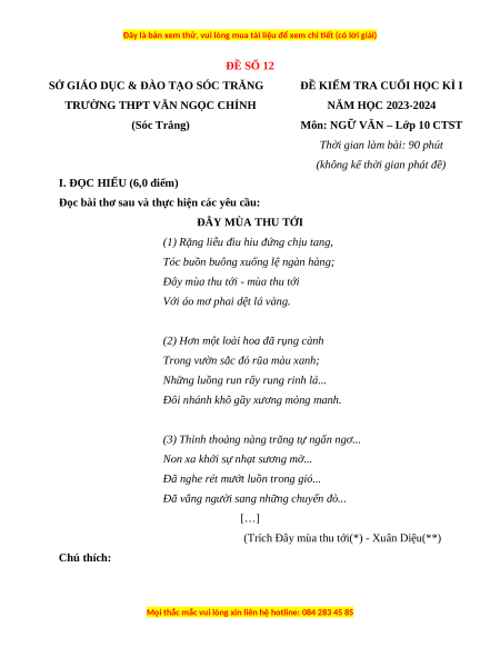 - Tailieugiaovien.com.vn giới thiệu bộ 15 đề cuối học kì 1 môn Ngữ Văn 10 bộ Chân trời sáng tạo mới nhất năm 2023 - 2024 nhằm giúp Giáo viên có thêm tài liệu tham khảo ra đề thi Toán lớp 10.