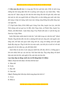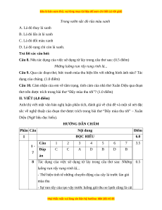 Diệu (Ngữ liệu đọc hiểu). HƯỚNG DẪN CHẤM Phần Câu Nội dung Điểm I ĐỌC HIỂU 6.0 Câu 1 2 3 4 5 6 7 3.5 1 - Đáp C C A D B D B 7 án