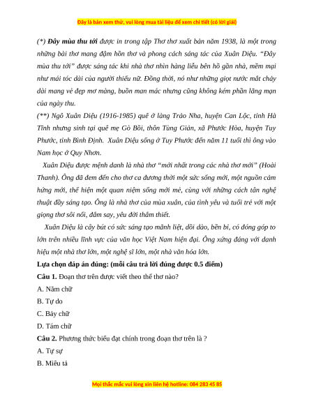 thơ trên được trích trong bài thơ “Đây mùa thu tới”? (1.0 điểm)