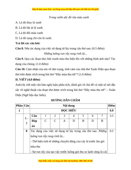 Đọc bài thơ sau và thực hiện các yêu cầu: ĐÂY MÙA THU TỚI