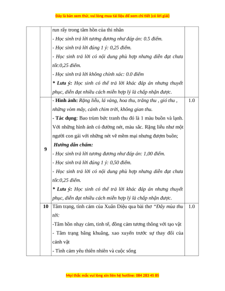 Câu 9. Qua các đoạn thơ, bức tranh mùa thu hiện lên với những hình ảnh nào? Tác