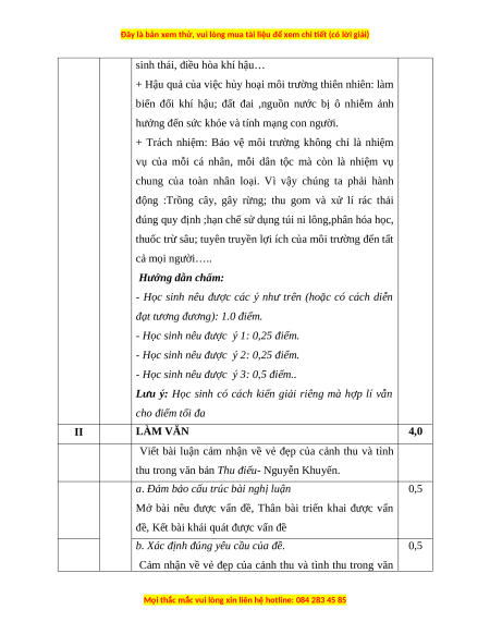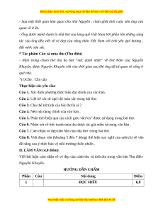 Viết bài luận cảm nhận về vẻ đẹp của cảnh thu và tình thu trong văn bản Thu điếu- Nguyễn Khuyến. HƯỚNG DẪN CHẤM Phần Câu Nội dung Điểm I ĐỌC HIỂU 6,0