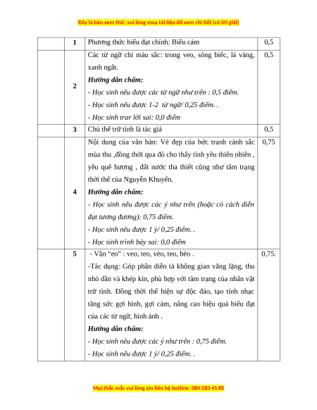 - Học sinh nêu được 1-2 từ ngữ/ 0,25 điểm. .