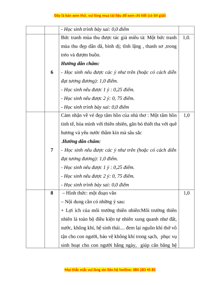 - Học sinh nêu được 1 ý : 0,25 điểm.