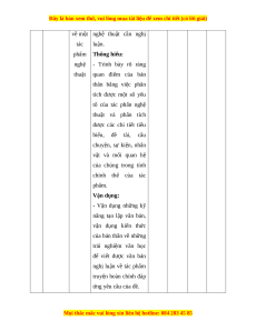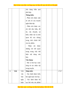 chi tiết tiêu biểu, đề tài, câu chuyện, sự kiện, nhân vật và mối quan hệ của chúng trong tính chỉnh thể của tác phẩm. - Nhận xét được những chi tiết quan trọng trong việc thể hiện nội dung văn bản. Vận dụng: - Rút ra bài học cuộc sống từ các nhân vật trong truyện. 2 Viết Viết Nhận biết: 1 TL* văn
