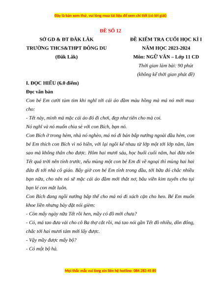 TRƯỜNG THCS&THPT ĐÔNG DU NĂM HỌC 2023-2024 (Đăk Lăk)