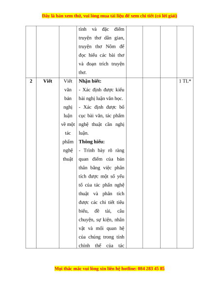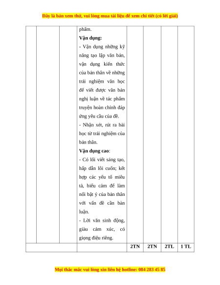 nổi bật ý của bản thân với vấn đề cần bàn luận. - Lời văn sinh động, giàu cảm xúc, có giọng điệu riêng. 2TN 2TN 2TL 1 TL