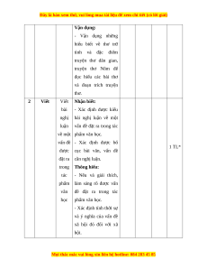 Vận dụng: - Vận dụng những hiểu biết về thơ trữ tình và đặc điểm truyện thơ dân gian, truyện thơ Nôm để đọc hiểu các bài thơ và đoạn trích truyện thơ. 2 Viết Viết Nhận biết: bài