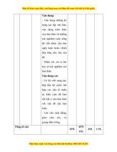 nổi bật ý của bản thân với vấn đề cần bàn luận. - Lời văn sinh động, giàu cảm xúc, có giọng điệu riêng. Tổng số câu 4TN 3TN 2TL 1 TL 1TL