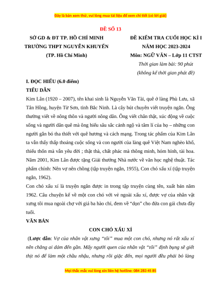 Đề thi cuối kì 1 Ngữ văn 11 Chân trời sáng tạo - Đề 13