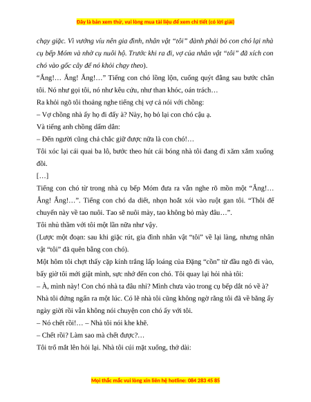 xưng tôi mua ngoài chợ với giá ba hào chỉ, đem về “dọn” cho đứa con gái chưa đầy tuổi. VĂN BẢN CON CHÓ XẤU XÍ