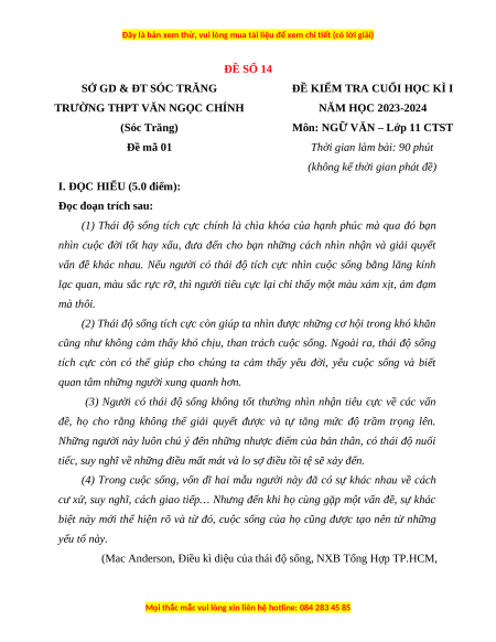 TRƯỜNG THPT VĂN NGỌC CHÍNH NĂM HỌC 2023-2024 (Sóc Trăng)
