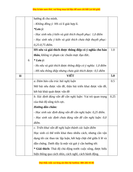 - Học sinh xác định chưa đúng vấn đề cần nghị luận: 0,0 điểm.