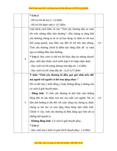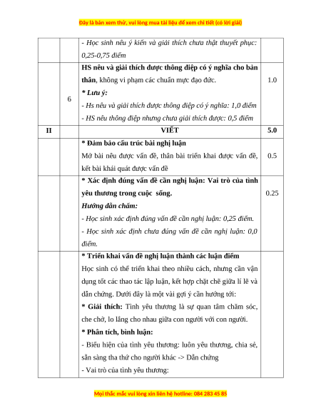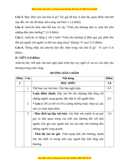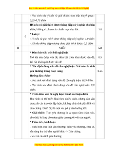 Anh/chị hãy viết một văn bản nghị luận trình bày suy nghĩ về vai trò của tình yêu thương trong cuộc sống. HƯỚNG DẪN CHẤM Phần Câu Nội dung Điểm I ĐỌC HIỂU 5.0 1