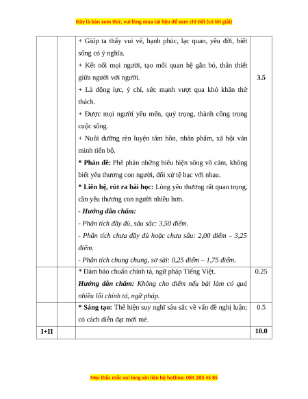 - Học sinh xác định chưa đúng vấn đề cần nghị luận: 0,0 điểm.