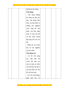 thế hệ trẻ nói riêng. Vận dụng: - Vận dụng những kỹ năng tạo lập văn bản, vận dụng kiến thức của bản thân về những trải nghiệm cuộc sống để viết được văn bản nghị luận về một vấn đề xã hội hoàn chỉnh đáp ứng yêu cầu của đề. - Nhận xét, rút ra bài học từ trải nghiệm của bản thân. Vận dụng cao: - Có lối viết sáng tạo, hấp dẫn lôi cuốn; kết hợp các yếu tố miêu tả, biểu