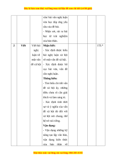 - Xác định được các lí lẽ, dẫn chứng được tác giả sử dụng trong văn bản nghị luận. Thông hiểu: - Phân tích được vấn đề nghị luận. - Phân tích được tác dụng và hiệu quả của các lí lẽ, dẫn chứng được sử dụng trong