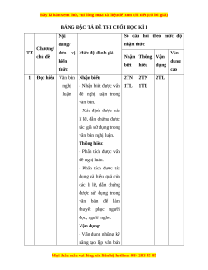 hấp dẫn lôi cuốn; kết hợp các yếu tố miêu tả, biểu cảm để làm nổi bật ý của bản thân với vấn đề cần bàn luận. - Lời văn sinh động, giàu cảm xúc, có giọng điệu riêng. 2TN 2TN Tổng số câu 2TL 1TL 1TL 1TL