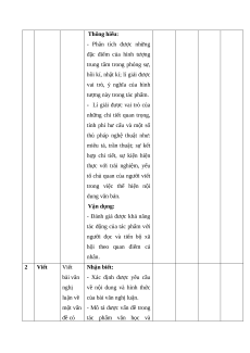 Mức độ nhận thức T Năng Mạch nội Tổng Vận dụng T lực dung Nhận biết Thông hiểu Vận dụng % cao Năng 1 lực Hồi kí 1 2 2 0 50 Đọc Viết bài văn