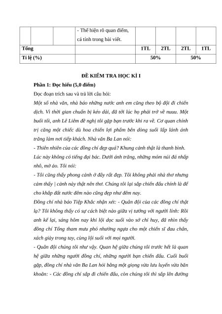 - Thể hiện rõ quan điểm, cá tính trong bài viết. Tổng 1TL 2TL 2TL 1TL Tỉ lệ (%) 50% 50%