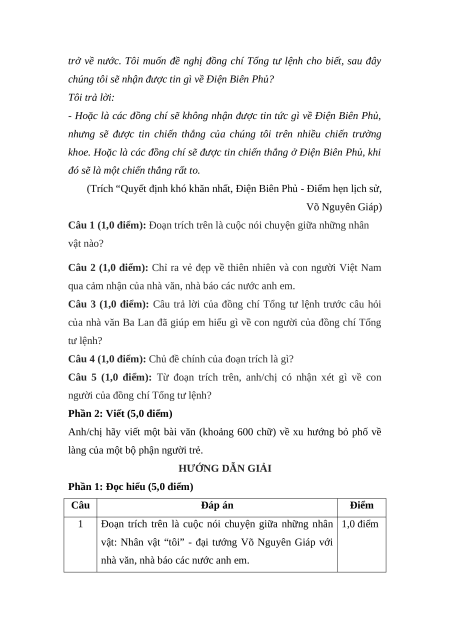 một vấn - Mô tả được vấn đề trong đề có tác phẩm văn học và liên