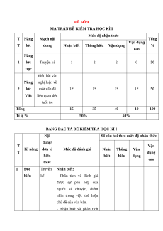 Số câu hỏi theo mức độ nhận thức dung/ T Vận Kĩ năng đơn vị Mức độ đánh giá Nhận Thông Vận T dụng kiến biết hiểu dụng cao thức 1 Đọc Truyện Nhận biết: hiểu kể - Phân tích và đánh giá